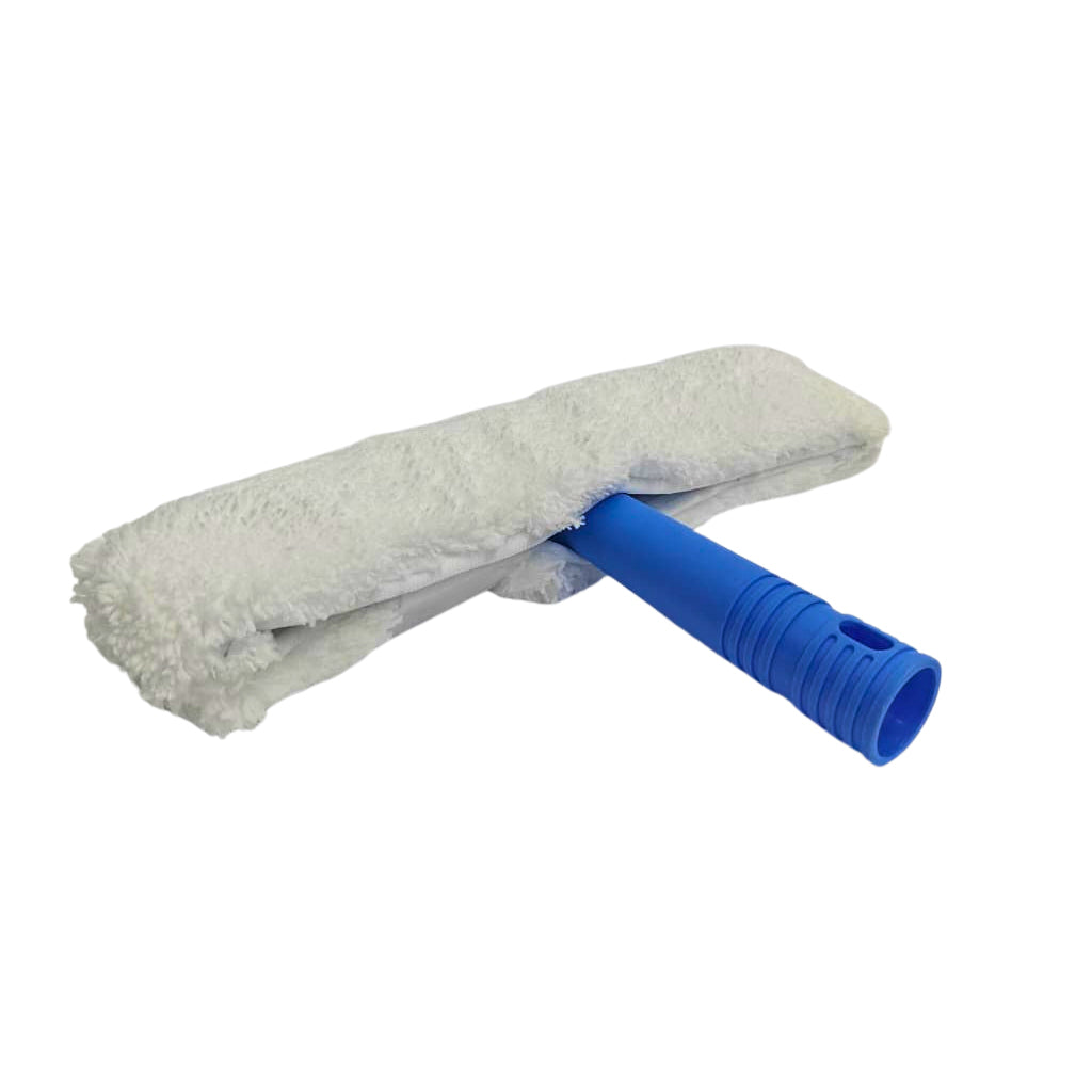 A window washer featuring a T-bar frame with an acrylic sleeve combines durability, reach, and cleaning performance to deliver streak-free, efficient glass cleaning. The T-bar is typically made of high-impact polyester with an ergonomically shaped handle and integrated water wells or grooves to retain cleaning fluid under the sleeve, reducing drips and making each pass more effective.